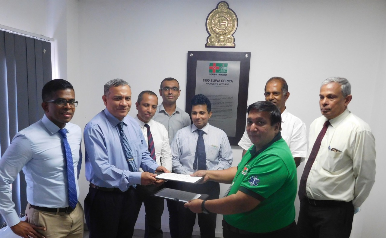 1990 Suwa Seriya Pre hospital Ambulance Service signed an MOU with the Sri Lanka College of Cardiology to obtain professional advice on Handling of Cardiac Patients who are being transported via the 1990 ambulance service. This partnership will help save more lives of the public who seek our services. Dr Sunil De Alwis, Additional Secretary Ministry of Health and Board Member 1990 Suwa Seriya, was instrumental in helping this partnership be cemented seamlessly.